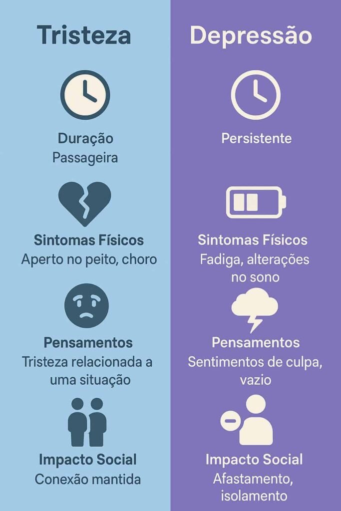 Mas como diferenciar uma tristeza comum da depressão? A psicóloga Dra. Ana Lúcia Mendes (CRP 12/3456) explica as 7 diferenças cruciais entre os dois estados.