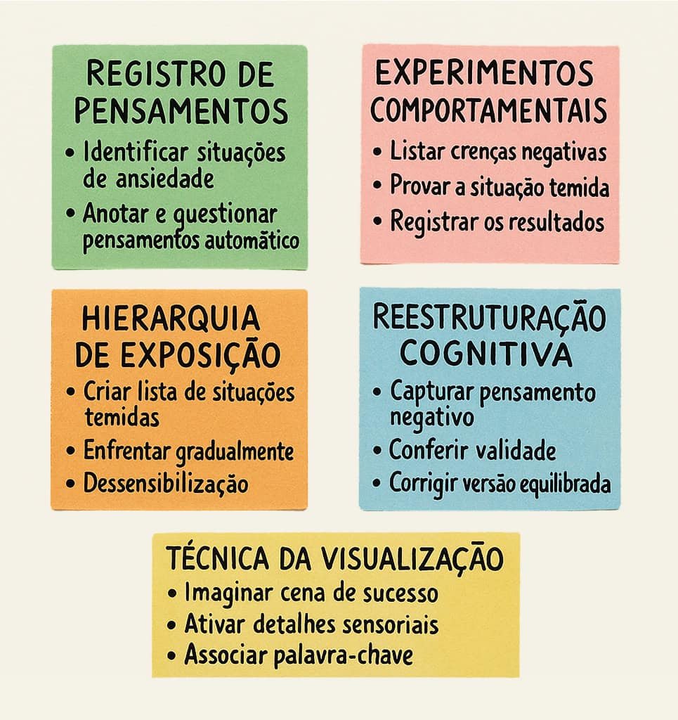 | Registro de Pensamentos | Ansiedade generalizada | 10 min/dia | ⭐⭐☆☆☆ |
