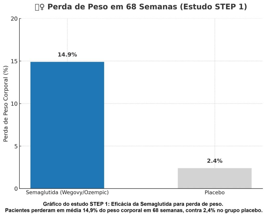 O estudo STEP 1, publicado no prestigiado The New England Journal of Medicine, é um dos mais emblemáticos. Nele, participantes com obesidade que usaram Semaglutida (Wegovy) perderam, em média, 14,9% do peso corporal ao longo de 68 semanas, comparado a apenas 2,4% no grupo placebo. Muitos pacientes relatam perdas de 10 a 15% do peso total, um resultado sem precedentes para medicamentos.